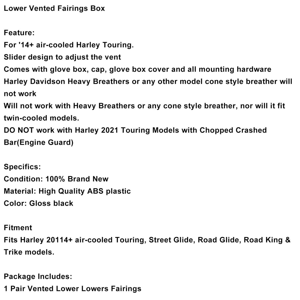 Spodnje prezračevane obloge za Touring Road Street Glide 2014–2024