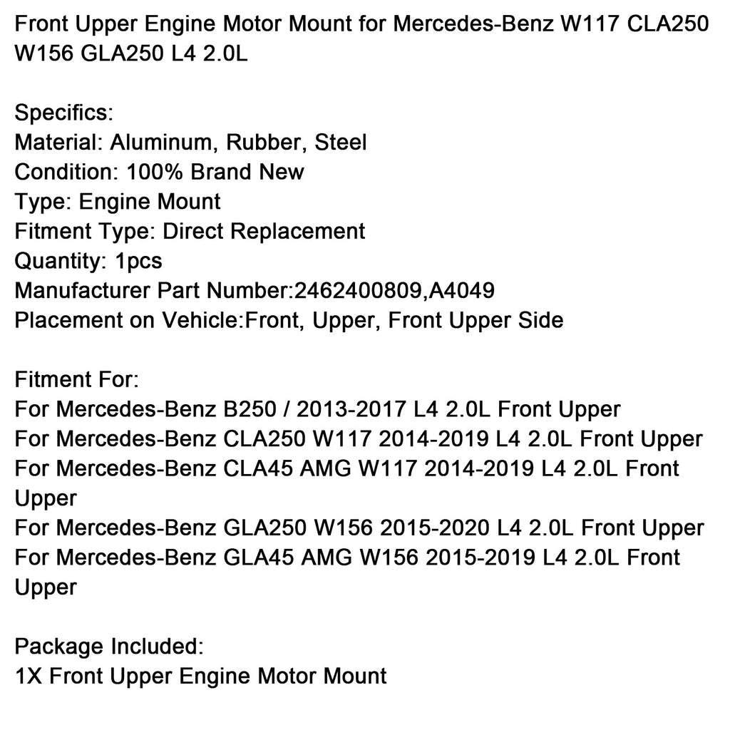 Sprednji zgornji nosilec motorja za Mercedes-Benz W117 CLA250 W156 GLA250 L4 2.0L