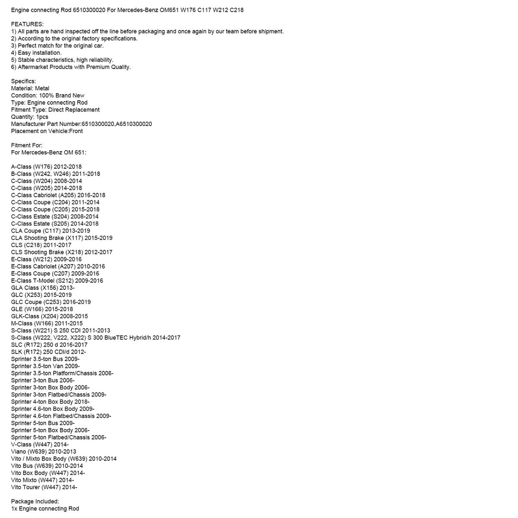 Ojnica motorja 6510300020 za Mercedes-Benz OM651 W176 C117 W212 C218