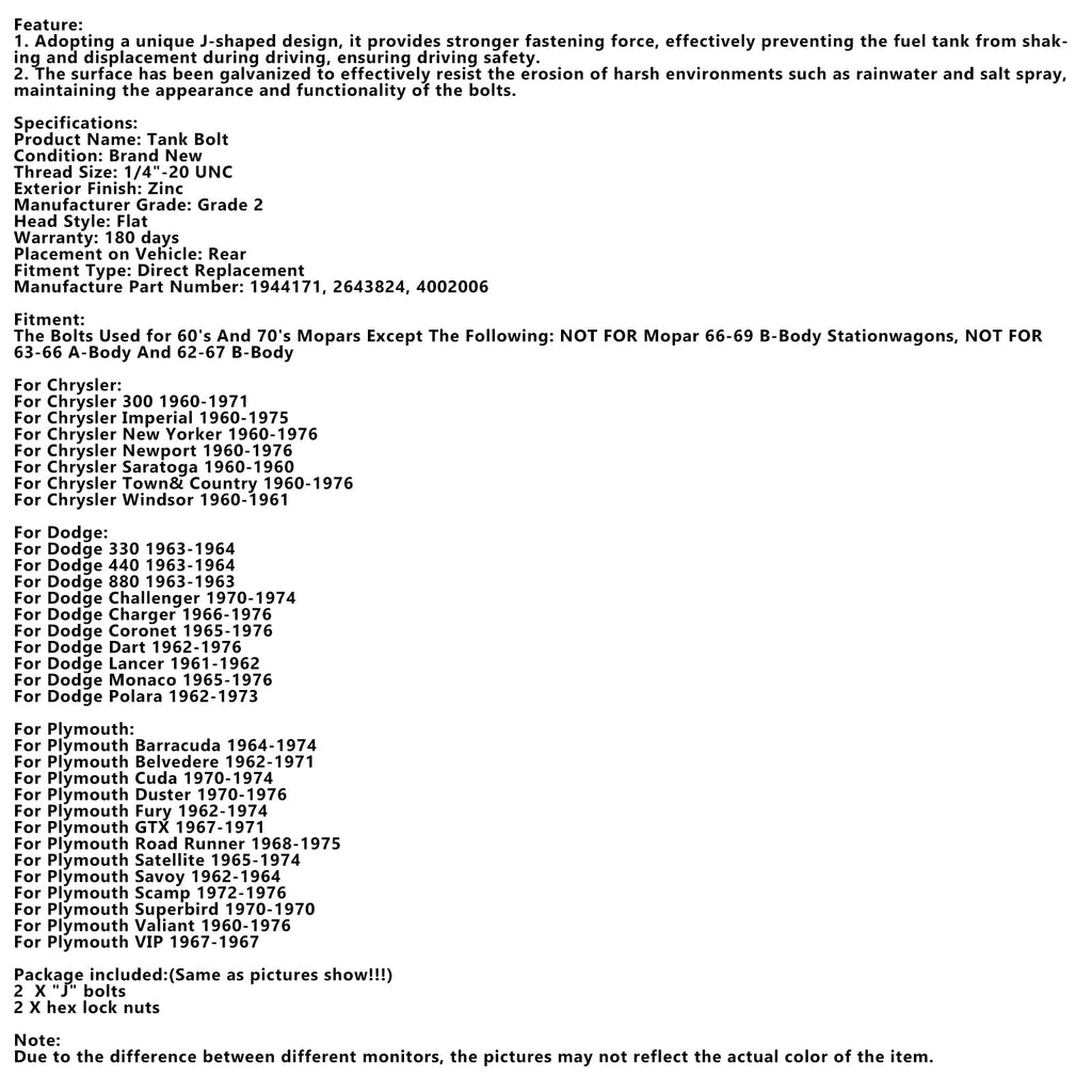 Vijaki, uporabljeni za Moparje iz 60. in 70. let, razen naslednjih NI ZA KAMARJE B-Body Mopar letnikov 1966–1969, NI ZA KAMARJE A-Body letnikov 1963–1966 in B-Body letnikov 1962–1967