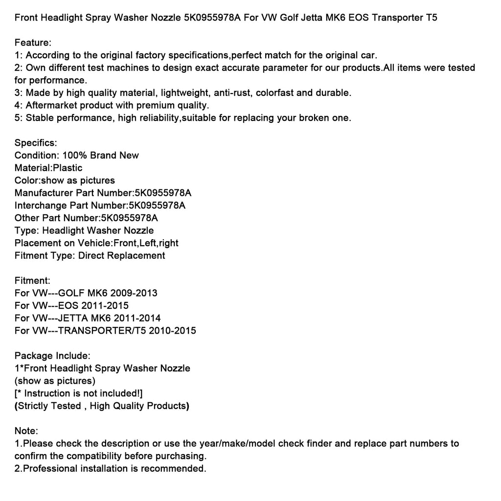 Šoba za pranje žarometov 5K0955978A za VW Golf Jetta MK6 EOS Transporter T5