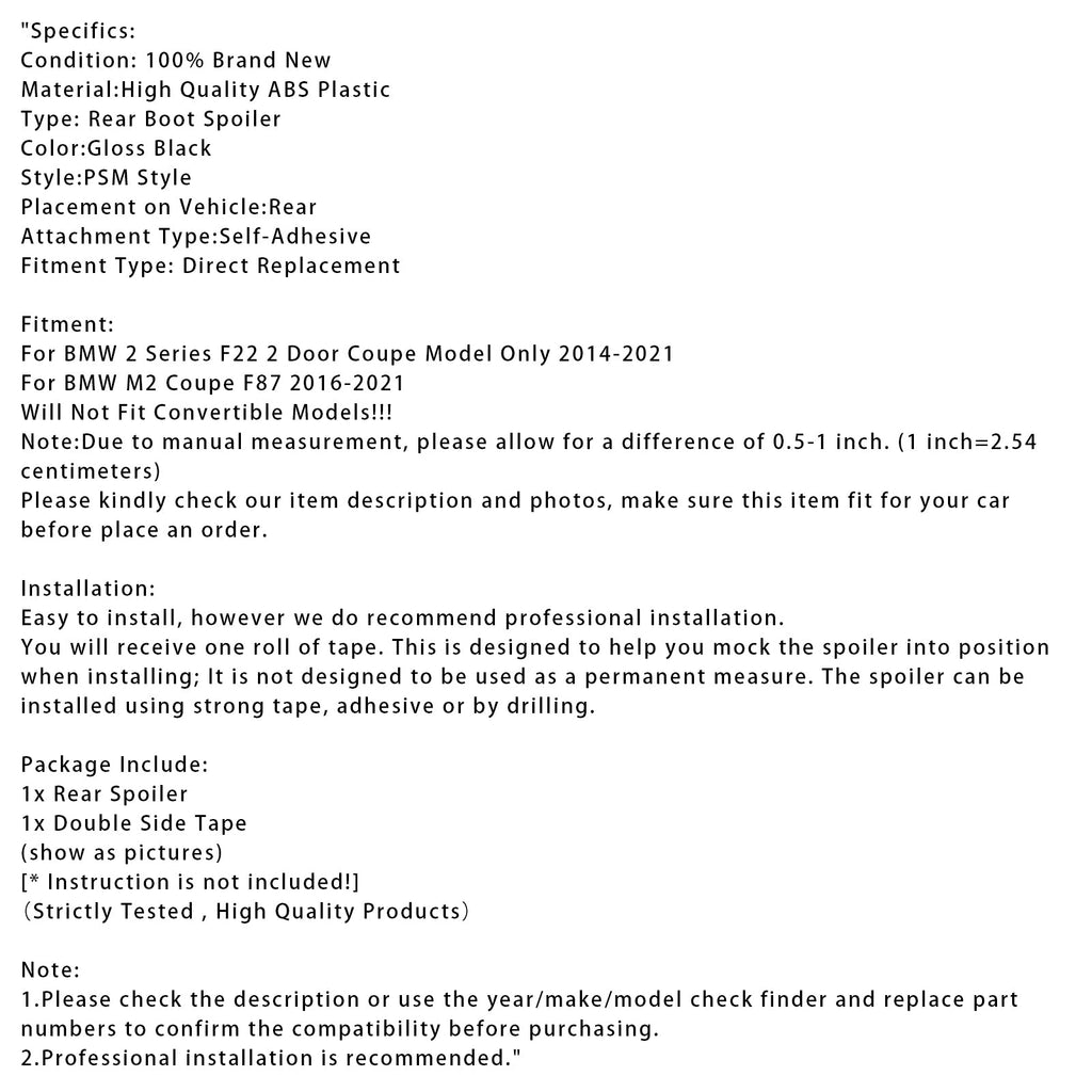 Sijajno črn zadnji spojler za BMW serije 2 F22 F87 Coupe 14-21, PSM Style