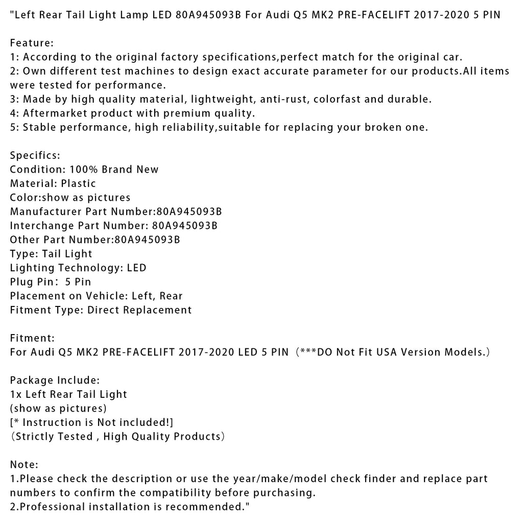 Leva zadnja LED luč 80A945093B za Audi Q5 MK2 (pred faceliftom) 2017-2020, 5-pinska
