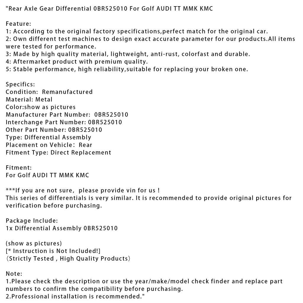 Diferencial zadnje osi 0BR525010 za Golf AUDI TT MMK KMC