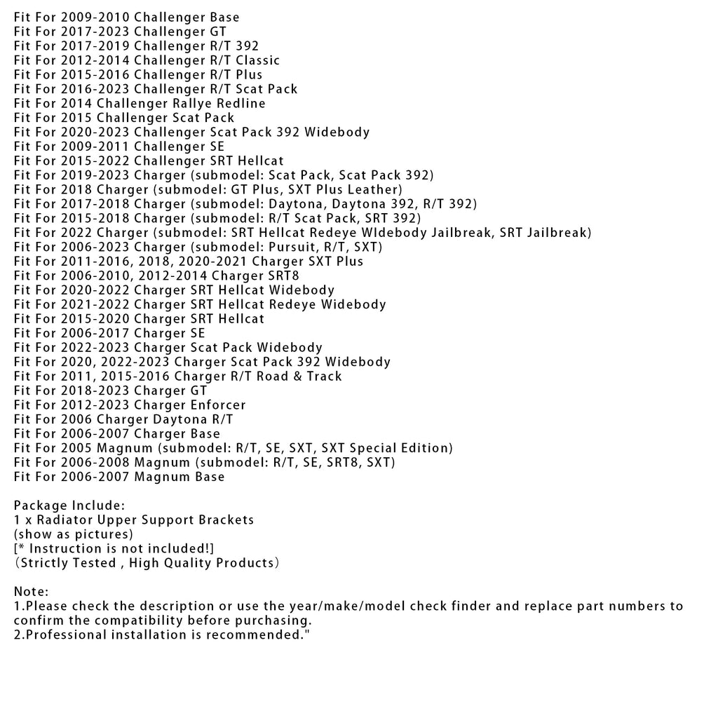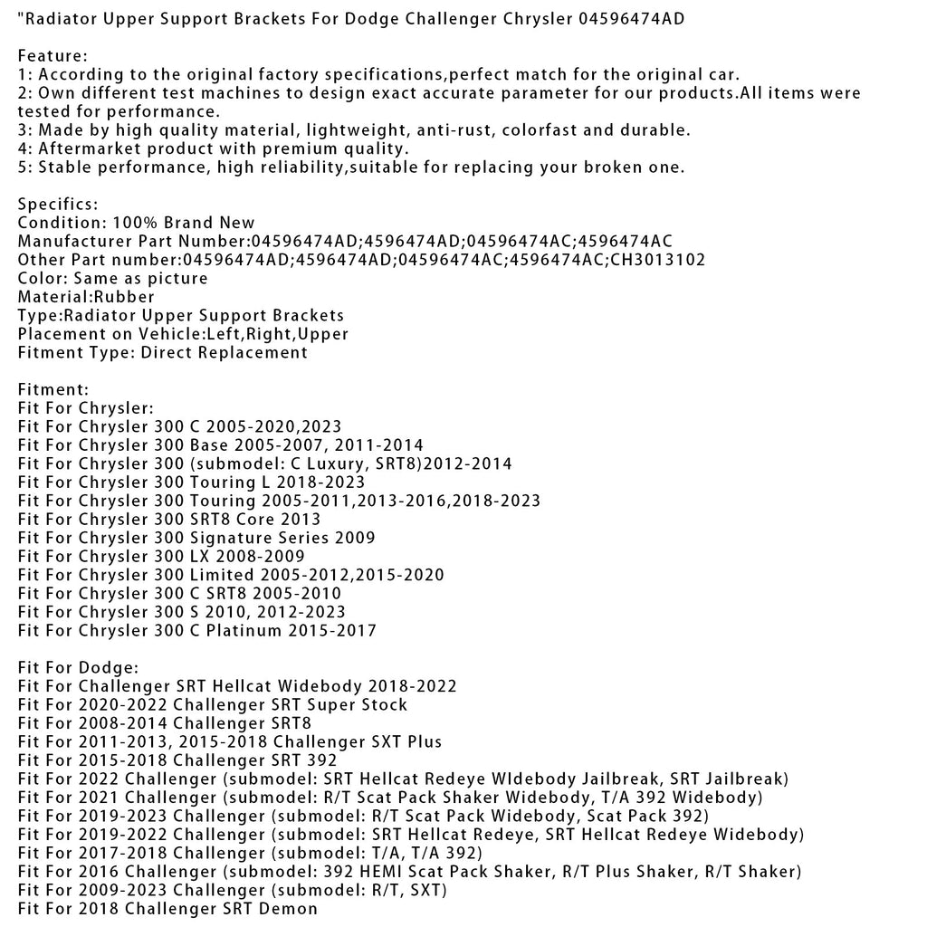 Zgornji nosilci hladilnika za Dodge Challenger Chrysler 04596474AD